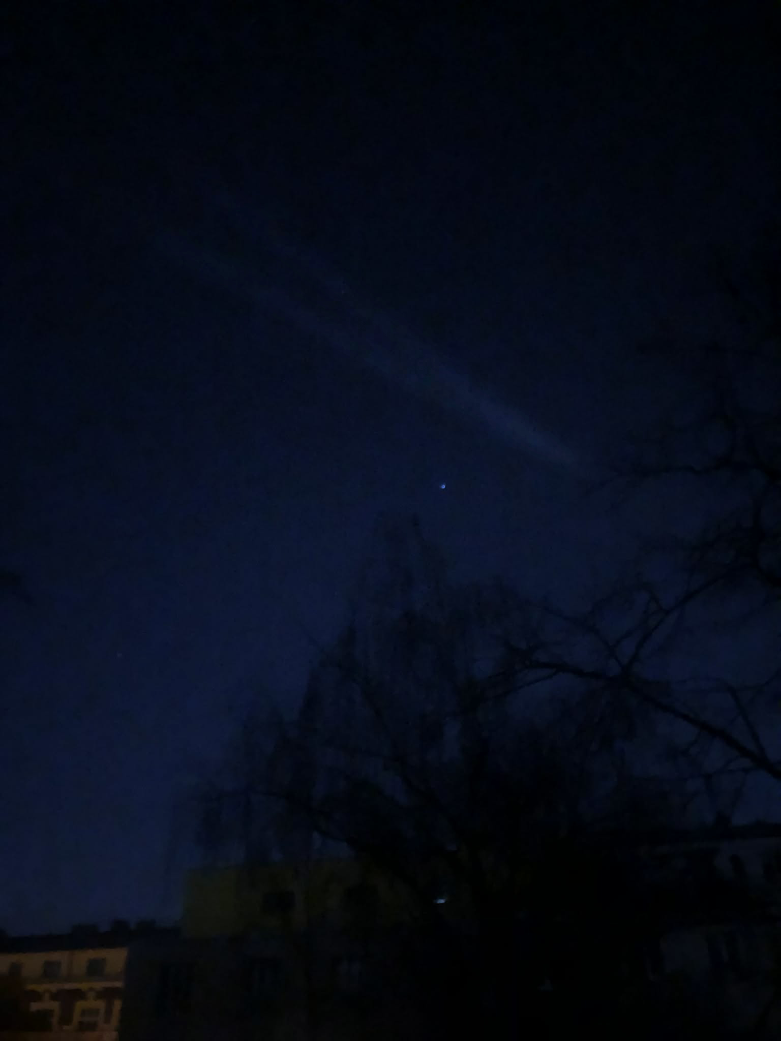 Then yesterday, right after waking up I went to balcony to get some cold fresh air. Looking up I saw a straight line that seemed like a cloud. Watching it, it moved further until it turned into two seemingly perfect lines that merge into one.