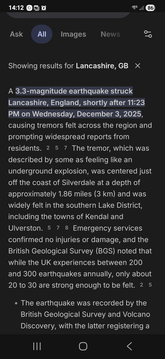 Earthquake in the North of the Uk